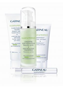 The CLEAR & PERFECT line was created so that people with combination to oily skin may re-discover the pleasure of healthy, velvety and soothed skin thanks to the GATINEAU SRP Complex™ (Sebo-Regulating – Pore refiner) which regulates sebum production and unblocks pores.