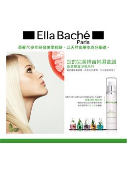 The cosmetic Detox for combination to oily skins Shine? Visible pores? Uneven complexion? Fading make-up? Local blemishes? The Nutridermologie® laboratory developed an avant-garde DETOX COSMETIC COMPLEX adapted to the new types of blemishes, growing fast and getting more common nowadays, concerning both adult and young skins.Ella Baché Pioneer of the Cosmetic Detox Ella Baché created in the 40’s, the 1st COSMETIC DETOX for combination to oily skins : Her MYTHICAL range of products concentrates thyme essences obtained by distillation, with a clearing and antiseptic properties.
